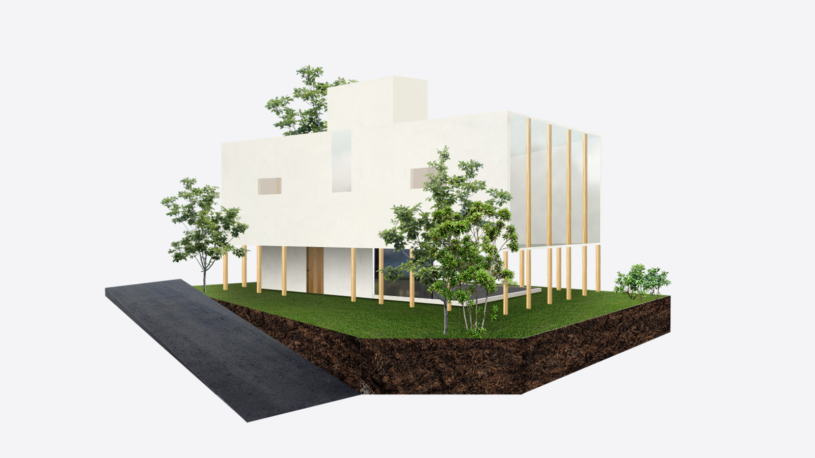 日陰のピロティでも日陰を好む植物を置いたりして。