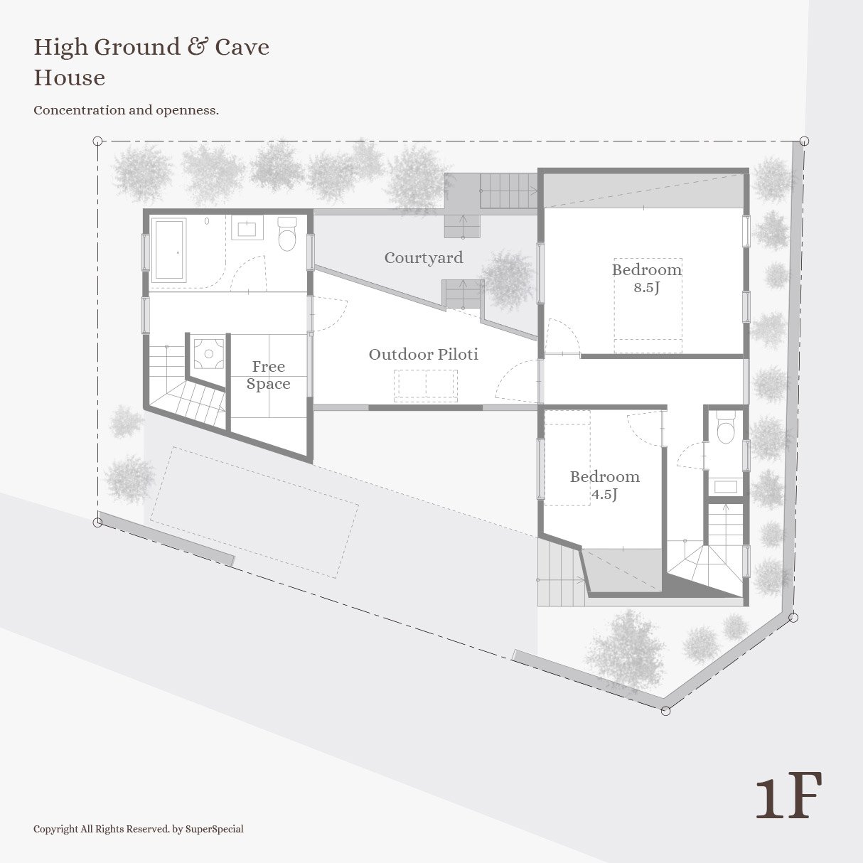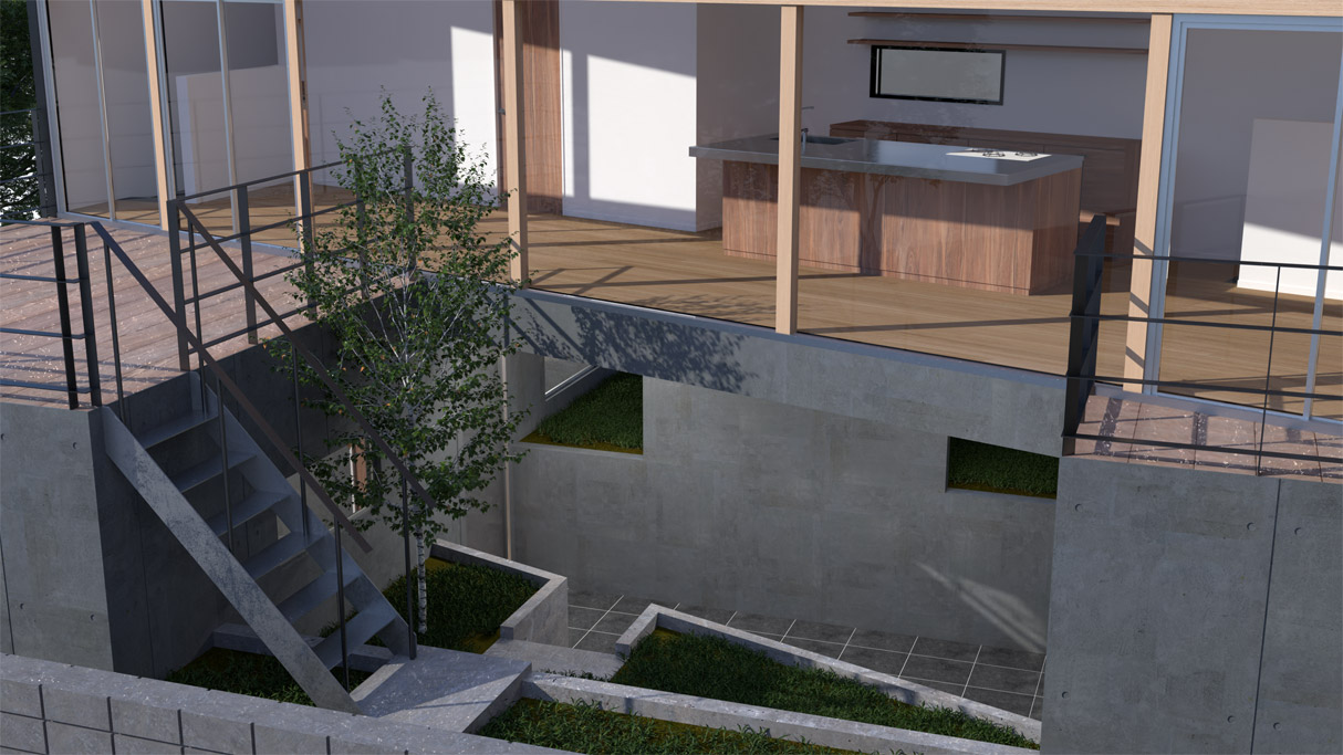 一階はすべてが半地下。
